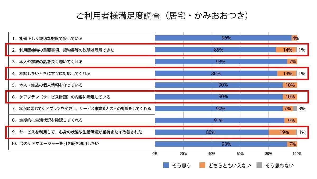 ご協力いただきました、利用者様及びご家族様に感謝申し上げます。調査の結果をご報告させていただきます。
